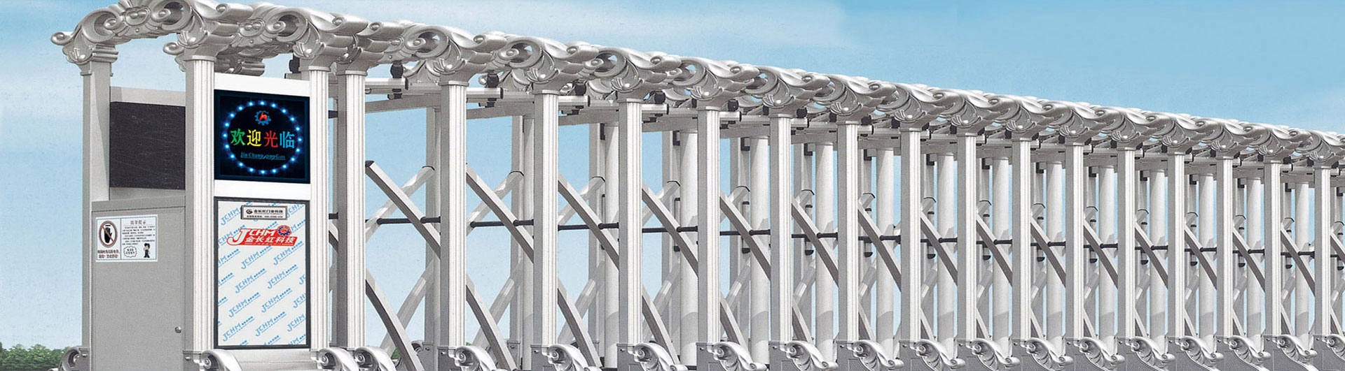 總部生產基地擁有9條完善的生產線,具備年產十萬米電動伸縮門生產能力